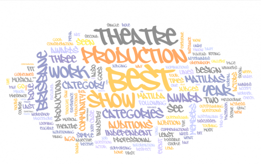 Meanwhile, the image above is what theatre means to this blog … at least this is the Wordle that shows the most-used words on the blog since we started last year.