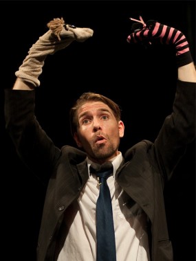 It may not be spring, but it’s always time for the warmth of a love story, especially when the cool winds and showers of autumn sweep around your ankles and make deciding what to wear to the theatre a right pain. So it was a real thrill to head to the theatre last night to welcome back a tale of young love and other local hazards boy girl wall. With no more than chalk, some blackboards, a couple of puppet socks, a few props and an overhead projector, Lucas Stibbard creates and embodies an entire world in the big, comfy room at Brisbane’s Roundhouse Theatre. It’s a sweet, comic and touching confection from The Escapists who, with this production, have been drawn into the La Boite fold for Season 2011. The boy girl wall team is the same creative collective that brought you The Attack of the Attacking Attackers some time back. The Escapists’ manifesto: imagination, theatricality and the joy of play are all joyously present in boy girl wall.